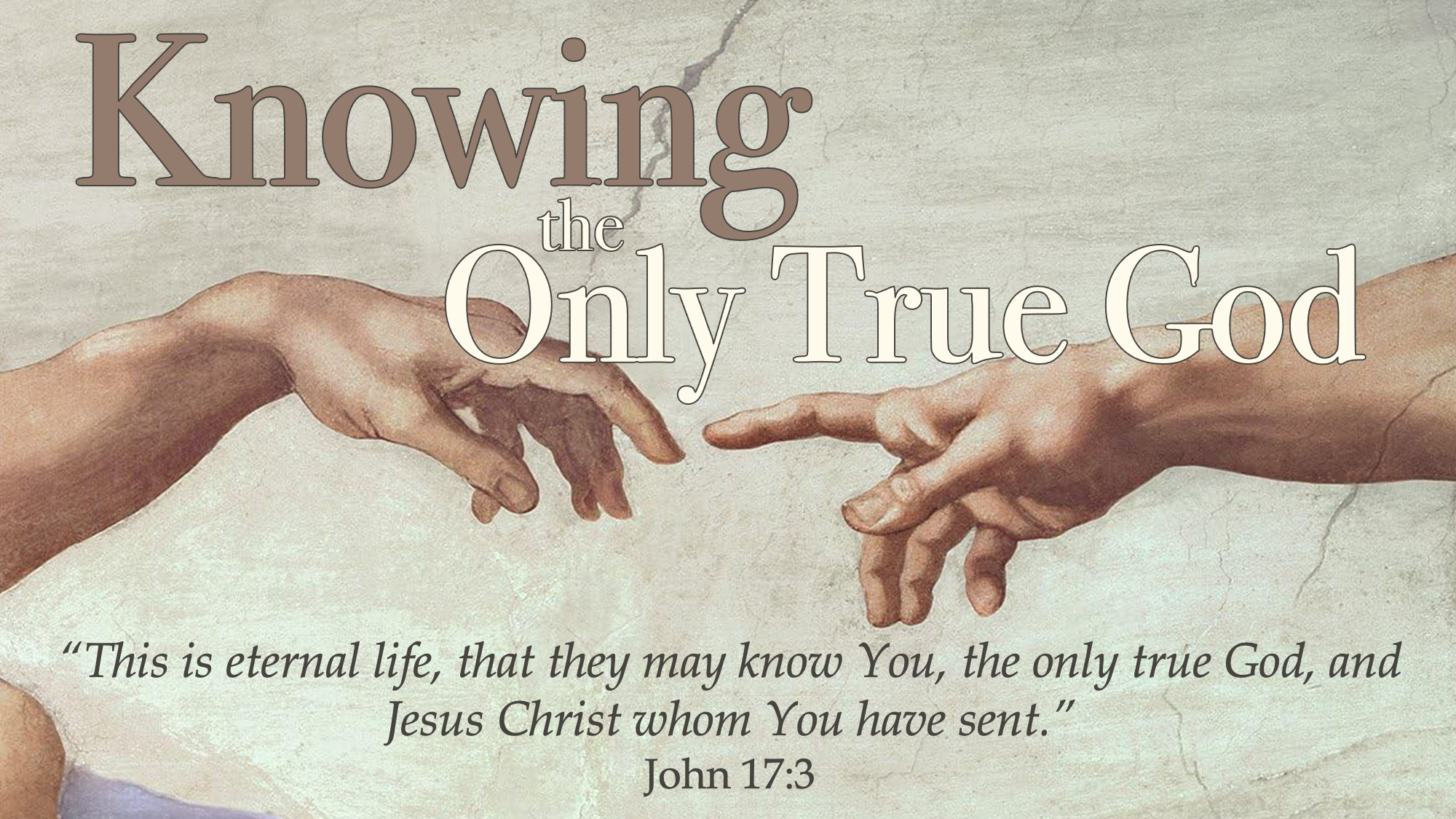 Worship of God is based on a proper understanding and perception of God. The “Only True God”, as revealed in the Scriptures, has far too often been dumbed down but the contemporary church to accommodate our man-centered desires. While we cannot completely comprehend Him in all of His fullness, He has communicated Himself to us clearly in His Word so that we might know Him intimately and respond with a life characterized by biblical worship of Him and faithful service to Him. Beginning April 19th, join us on Sunday mornings at 10:30am as we set our hearts to “Knowing the Only True God.”