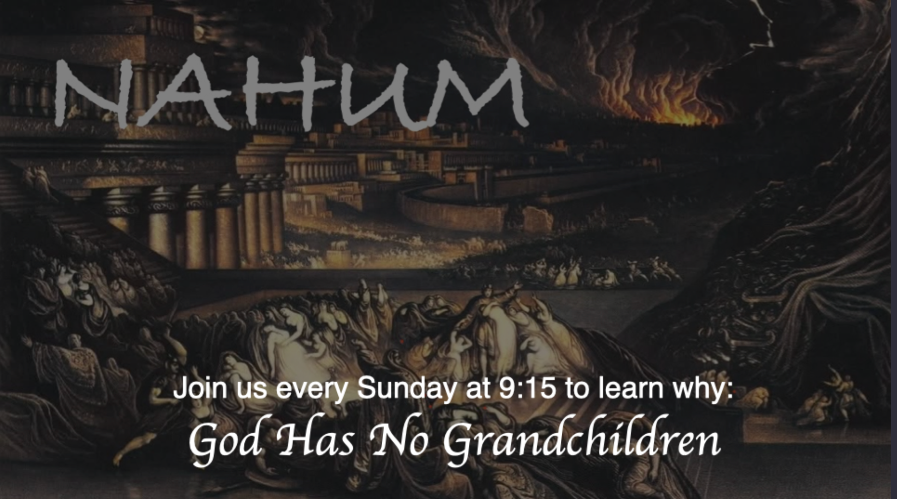 Many people who have grown up in a Christian household believe they are saved only because of their parents’ faith. Others believe they are gifted heaven only because of their ethnicity. Nahum is a book which demonstrates that every person is responsible for their own sin. Come join us to see how God offers salvation to anyone who repents – but dispenses justice on those who know the truth but refuse to listen.